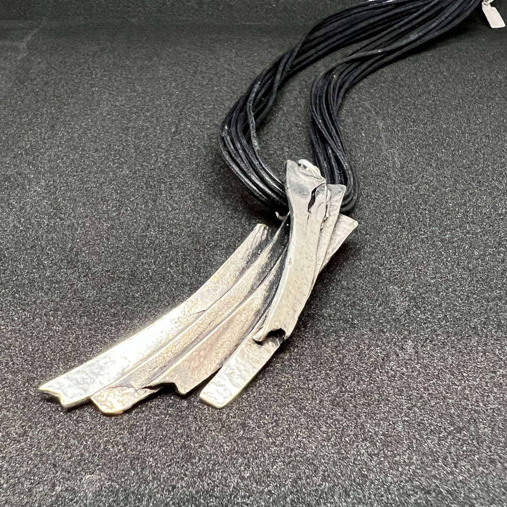 錫を使ったシンプルながら個性的なネックレスです。