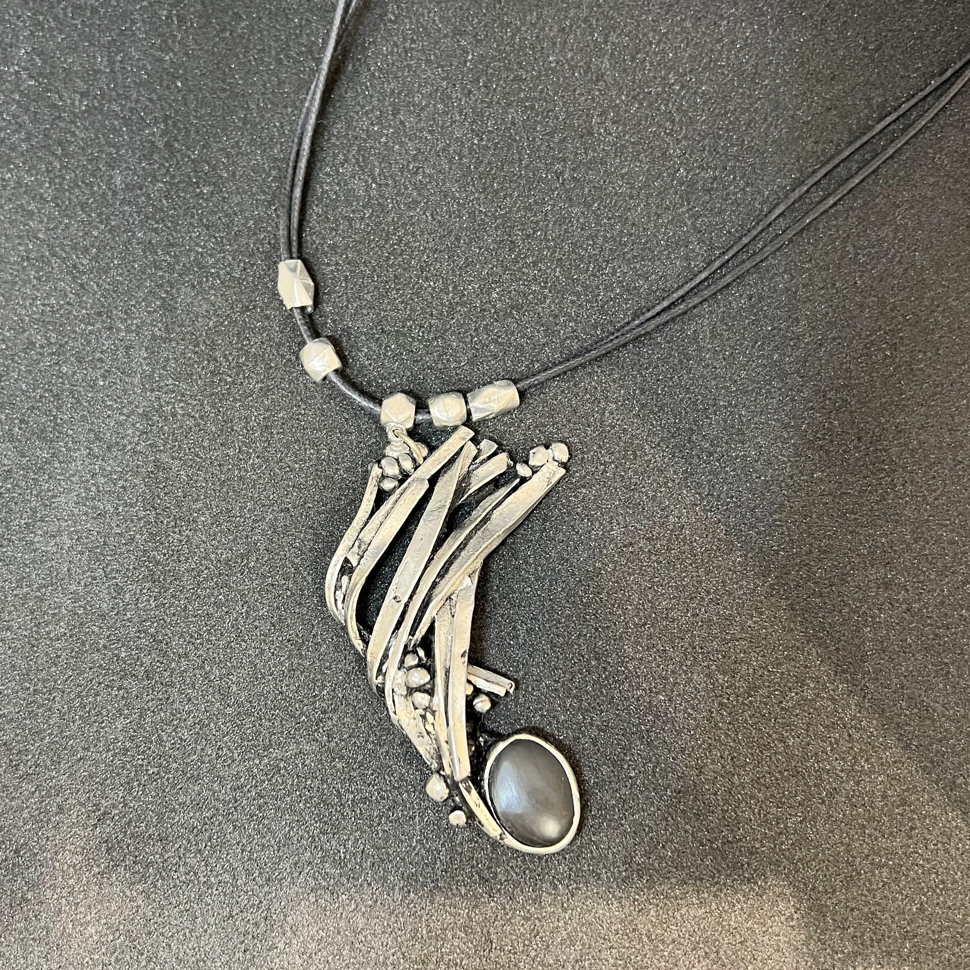 石と錫(すず)でつくった存在感のあるネックレスです。